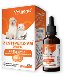 ZESTIPETZ-VM Multivitamin, Amino Acids & DHA Drops for Puppies & Kittens.